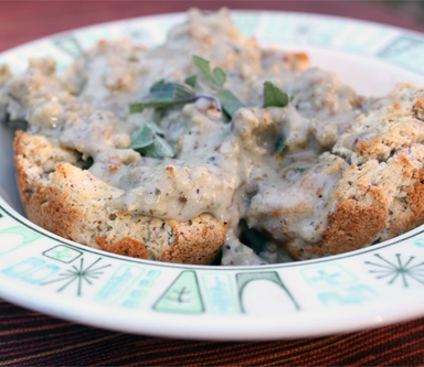 Add the sausage back in and incorporate throughout the gravy. Cook for a moment so everything is heated evenly.